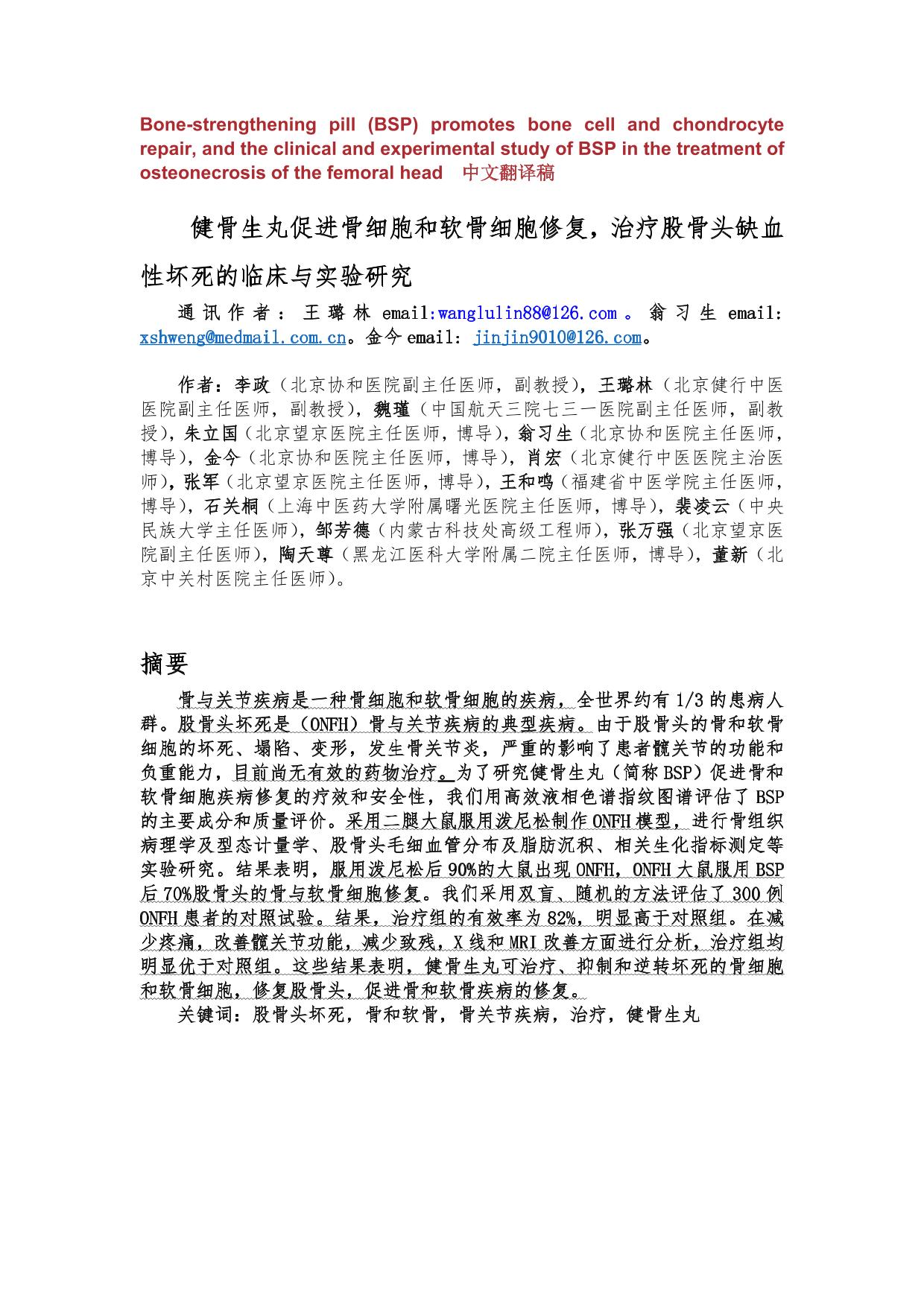 健骨生丸促进骨与软骨细胞修复治疗股骨头缺血性坏死的临床与实验研究